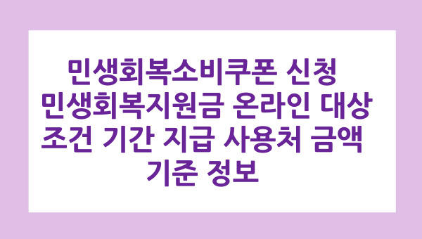 민생회복소비쿠폰 신청 민생회복지원금 온라인 대상 조건 기간 지급 사용처 금액 기준 정보에 대해 알아보도록 하겠습니다. 이 내용을 읽으시면 민생회복소비쿠폰 신청 민생회복지원금 온라인 대상 조건 기간 지급 사용처 금액 기준 정보를 알게 되실 겁니다. 민생회복소비쿠폰의 신청 방법, 자격 조건, 지급 금액, 사용처, 주의사항까지 꼼꼼하게 안내해 드립니다.